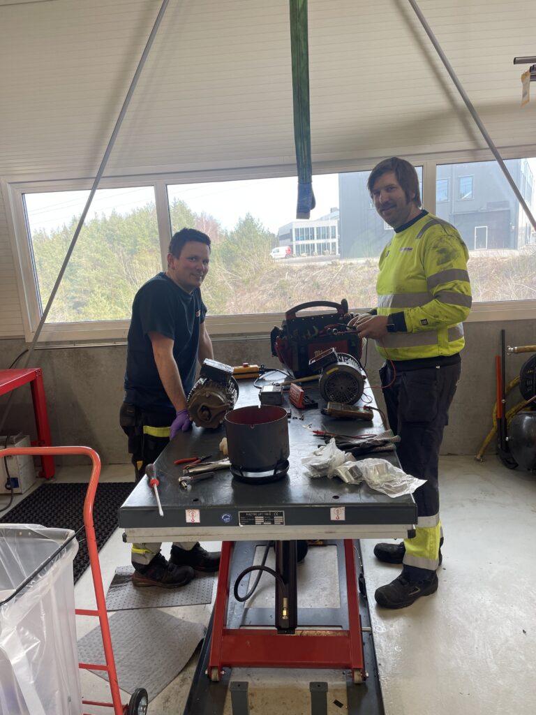 Overhaling av kabeltrekk er en avgjørende del av vedlikeholdet. Å vedlikeholde kabeltrekket er en viktig del av kranens driftssikkerhet, og det er avgjørende for å sikre stabil og trygg håndtering av tunge løft. På bildet ser vi gutta i aksjon, midt i demontering og kontroll av komponentene. Under overhalingen ble det tydelig at dette var et etterlengtet vedlikehold. Lagrene var i svært dårlig stand, og det samme gjaldt oljen. Det ble tappet ut store mengder vann før den gamle oljen i det hele tatt begynte å komme. Dette er et godt eksempel på hvorfor regelmessig service er så viktig for å unngå alvorlige driftsproblemer og kostbare havarier. Med et godt samarbeid og fokus på detaljer, fikk Anders og Ola jobben gjort på en måte som virkelig setter standarden.